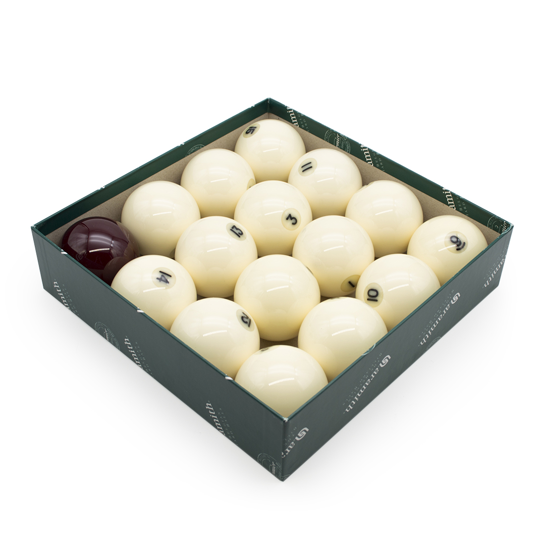 Времена тяжелых и неровных шаров из слоновой кости остались в далеком прошлом. Современные сферы изготовлены из полимеров и фенол-альдегидных смол, придающих изделиям устойчивость к сильным ударам. Шары для русской пирамиды, цена которых доступна как спортклубам, так и частным лицам, не деформируются, не царапаются, долгое время сохраняют первоначальный цвет. Безупречное качество исполнения, солидный внешний вид шаров бельгийской фирмы Aramith известны во всем мире. Имеются и более демократичные по стоимости и выполненные из полимера изделия торговой марки Classic.